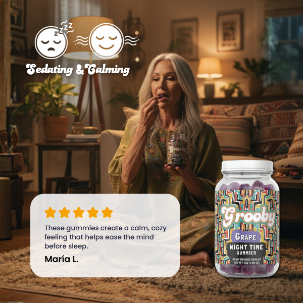 Get your hands on a jar of 20 Grooby Gummies, crafted for smooth, consistent effects and easy enjoyment. Whether you’re looking for warm, grounding comfort, uplifting daytime vibes, or calm, sedating nighttime relaxation, there’s a Grooby gummy to match your moment.