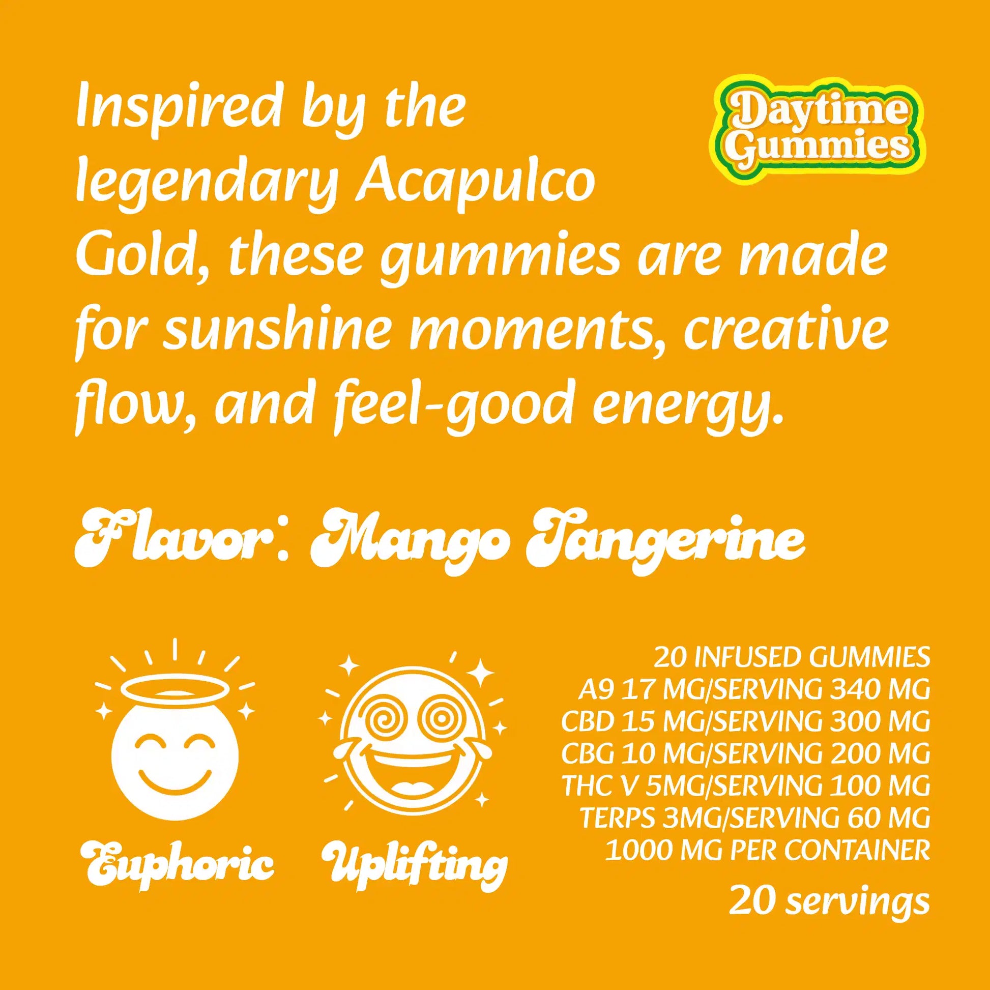 Ingredients: Corn Syrup, Sugar, Water, Pectin, CBG, CBD, A9, HTE (Cannabigerol, Broad Spectrum Cannabidiol Extract, Delta-9-tetrahydrocannabinol, High Terpene Extract, from Hemp), Natural Flavors, Citric Acid